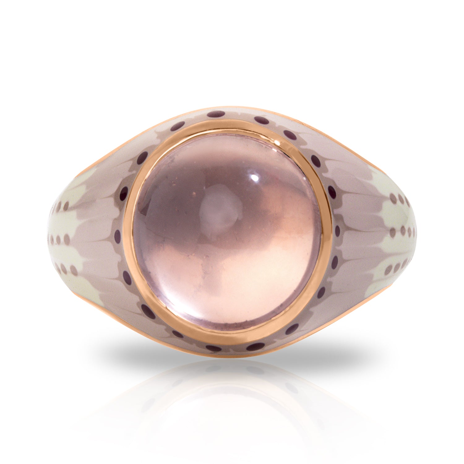 A dreamy, tie-dye enamel band wraps around a radiant gemstone orb—one that catches the light with a gentle wink and a touch of the divine.