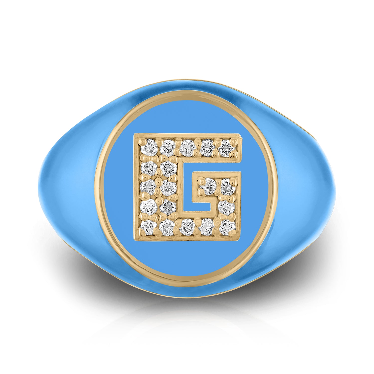 Bring a modern spark to the classic monogram. A signet pinky ring that looks great on any finger, with luminous Aura shades and timeless core colors designed to redefine your neutral. Each ring features a pavé diamond LetterBlock© initial, nine enamel options (plus two new Aura fall colorways for Holiday 2025), and a comfort fit. We pinky swear you’ll never want to take it off.
