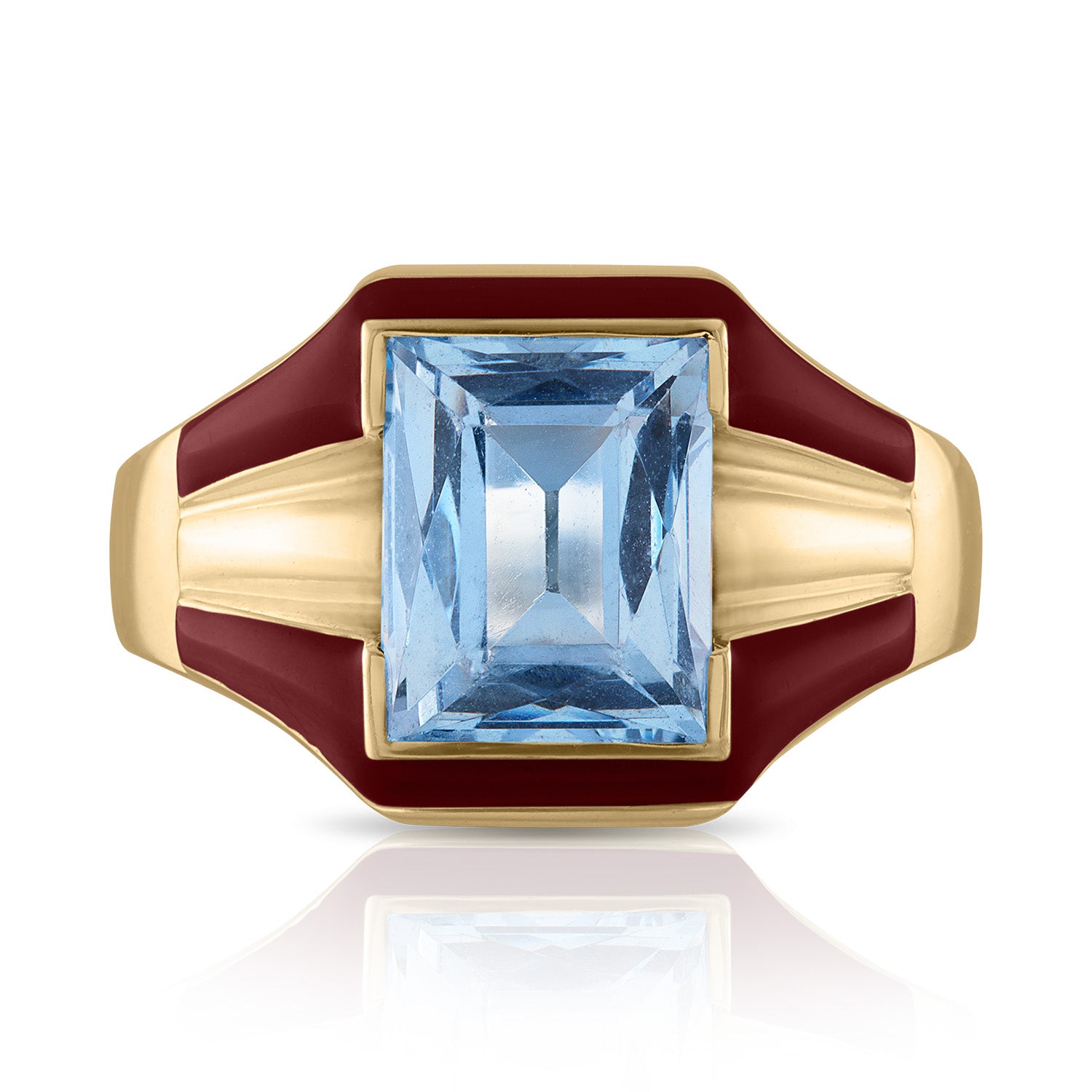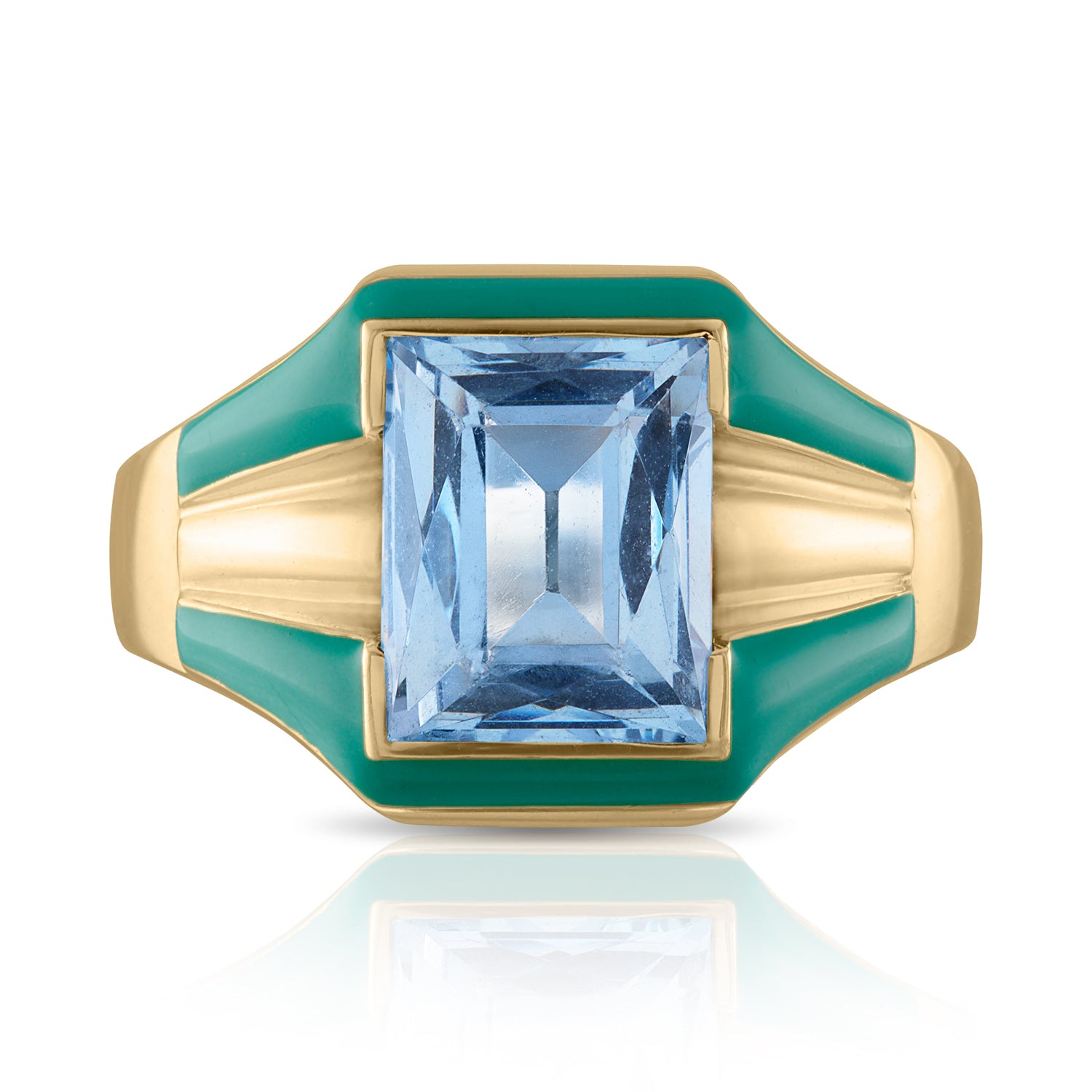 Introducing Big Ben, a signature piece from our REjeweled Collection — where old treasures are reborn. Named after my father, Ben, this ring began as one of his cherished pieces. I reimagined it through a feminine lens, transforming its strong silhouette with a wash of luminous enamel and the brilliant twinkle of blue topaz.
