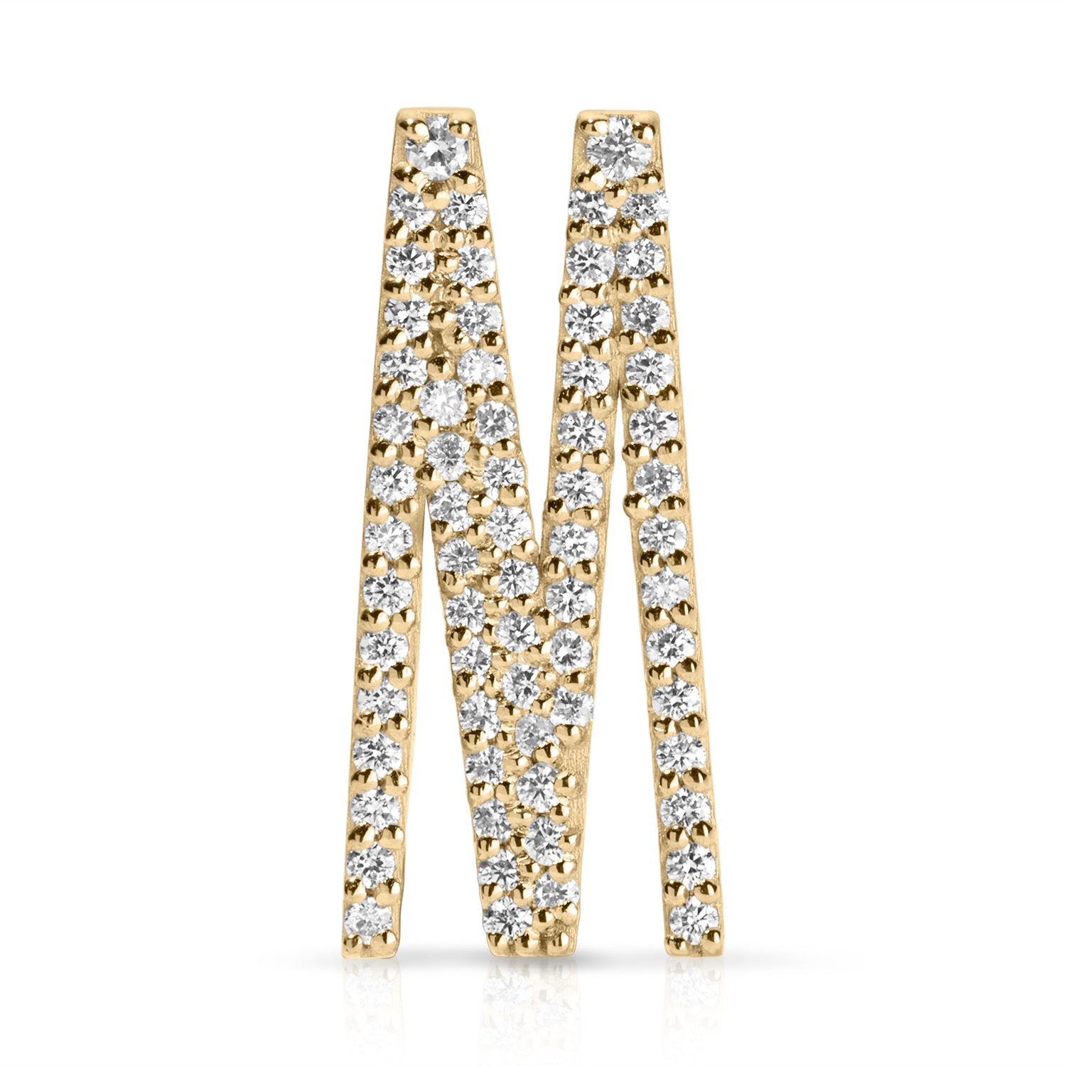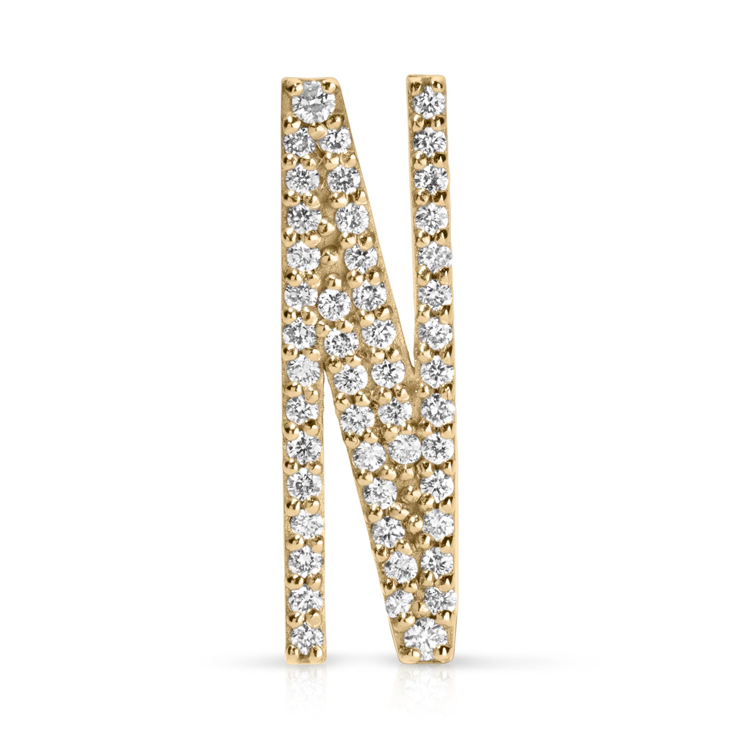 • Diamond Pavé — 14K gold with white brilliant-cut diamond pavé (0.12–0.40 ctw, varying by letter)